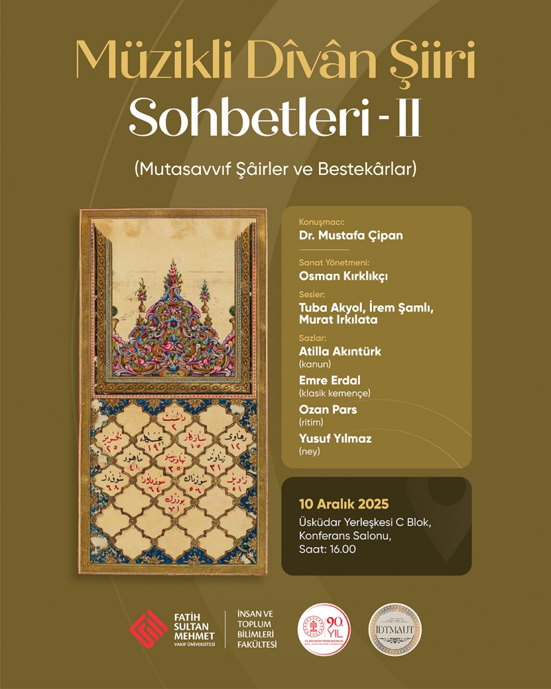"Müzikli Dîvân Şiiri Sohbetleri II: Mutasavvıf Şâirler ve Bestekârlar" başlıklı etkinliğe davetlisiniz.