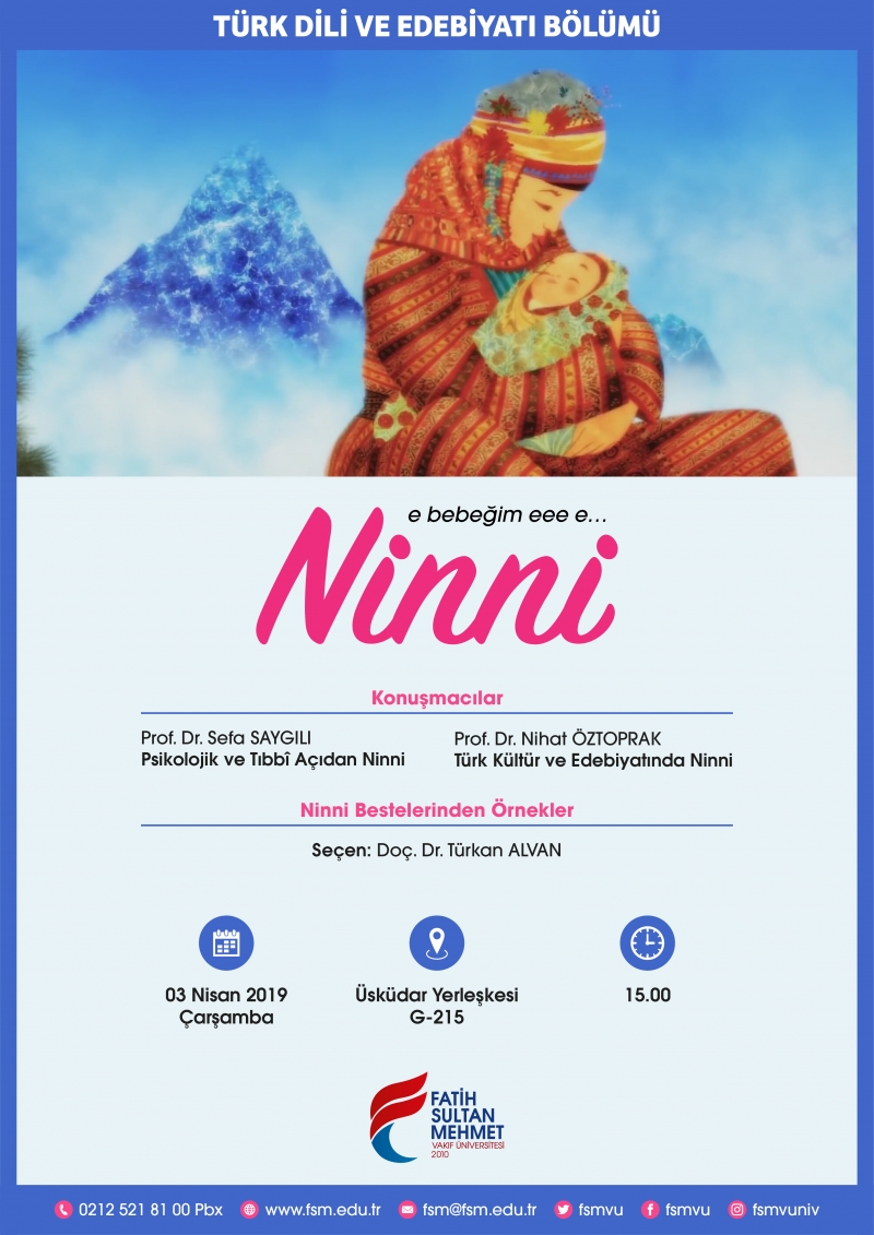 Edebiyat Fakültesi’nden Prof. Dr. Nihat Öztoprak ile Prof. Dr. Sefa Saygılı’nın konuşmacı olduğu konferansta ayrıca Doç. Dr. Türkan Alvan’ın seçtiği ninniler sunulacak.