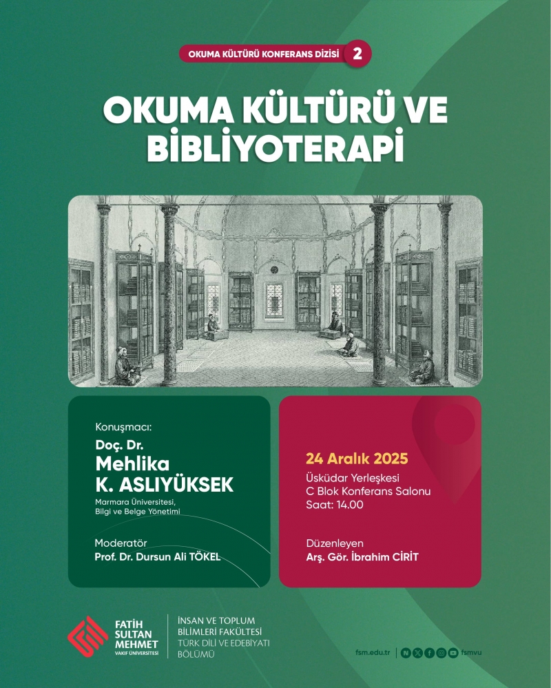 Türk Dili ve Edebiyatı Bölümü tarafından düzenlenen Okuma Kültürü Konferans Dizisi'nin ikinci programı "Okuma Kültürü ve Bibliyoterapi" başlıklı panele davetlisiniz!