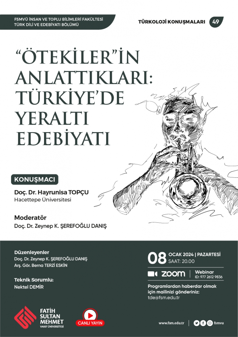 Türkoloji Konuşmaları, 49. oturumunda "Ötekiler"in Anlattıkları: Türkiye'de Yeraltı Edebiyatı başlıklı konuşmasıyla Doç. Dr. Hayrunisa Topçu'yu ağırlayacak.
